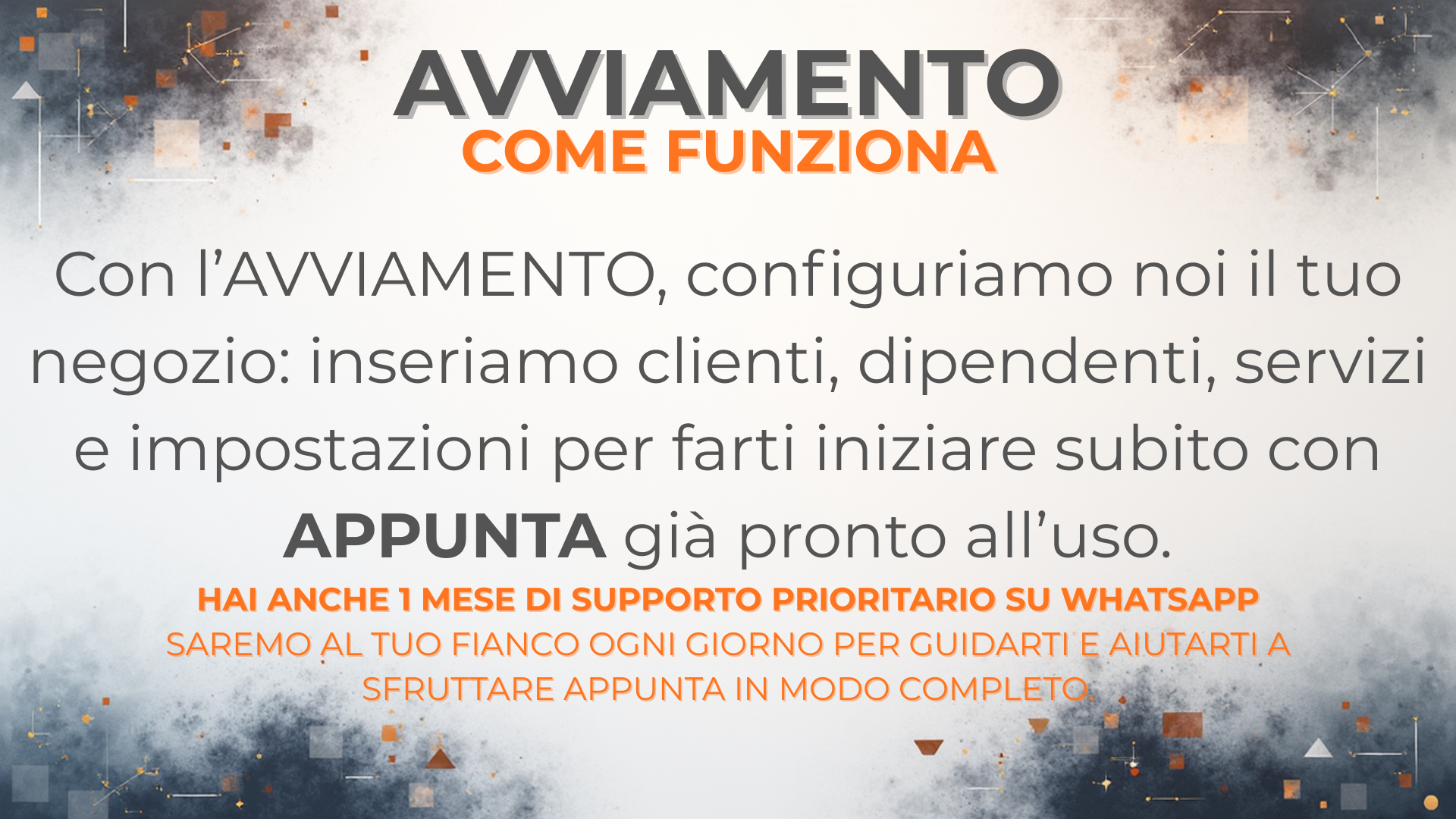 In ogni caso, è un servizio opzionale: APPUNTA funziona perfettamente anche senza attivarlo, ma ti consente di partire subito, senza pensieri e con assistenza dedicata.